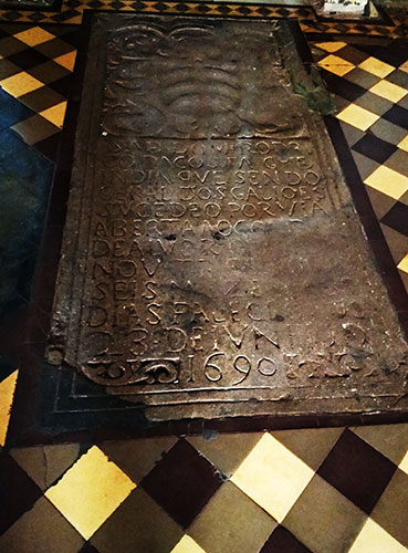 To the right of the main altar is the silver casket containing the the body of St Francis Xavier. The body was brought to the church in 1622 and installed in the mausoleum in 1698. Cosimo III, Grand Duke of Tuscany, commissioned Florentine sculptor Giovanni Batista Foggini to create the three-tiered mausoleum. Italian Jesuit Marcelo Mastrili designed the casket.