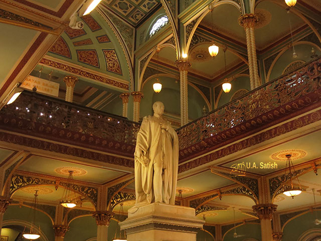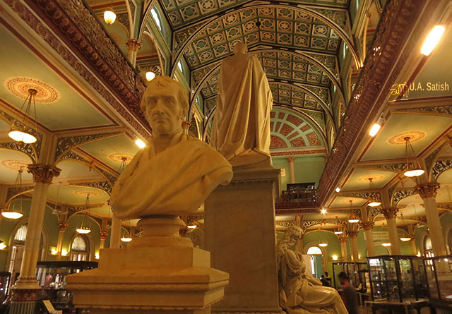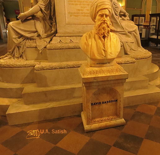 At the foot of Prince Albert’s sculpture is a beautiful marble bust of David Sassoon. He amassed great wealth in Bombay through cotton trade with China and England. He built synagogues, gardens, hospitals, schools and colleges.