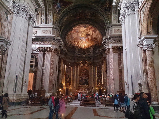 Saints Vincent and Anastasius of Trevi is a seventeenth century Roman Catholic church. It overlooks the famous Trevi Fountain in Rome. The church has a beautifully decorated altar and painted ceiling. The architecture is spectacular with lofty arches.