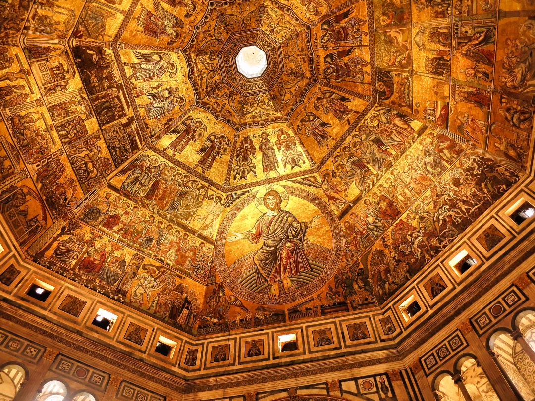 Next to the Duomo is the Bell Tower which is in Gothic style. It houses many life-size statues by Florentine masters. The tower has a height of 85 metres. The cathedral of Florence is one of the few churches where the church itself is higher than the church tower. The mighty dome on the church is at 107 metres and higher than the bell tower. Visitors can climb both the dome and bell tower. The view of Florence from the top is magnificent. From atop the bell tower, you have the possibility to photograph the dome at close quarters.