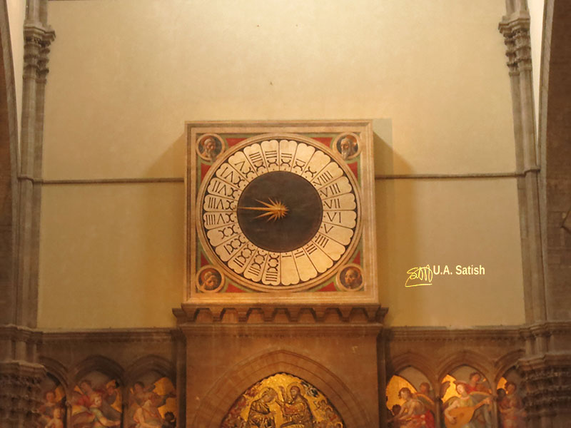 The colossal clock above the main door shows time in 24 hours. The clock face has only one arm. Paolo Uccello designed it in the fifteenth century. The clock is still in working condition.