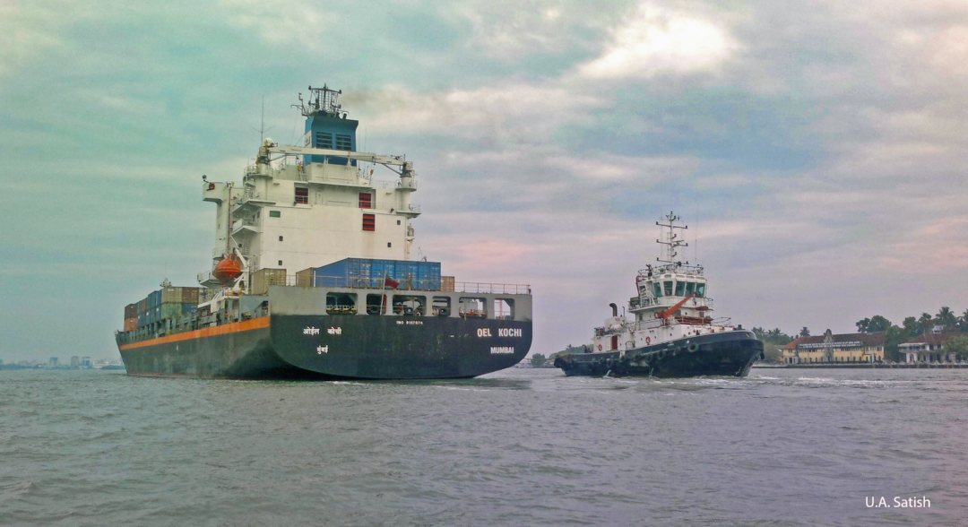 Container Ship and Tug; Kerala; Kochi Harbour; uasatish;