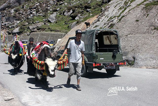 Sikkim; India; Yaks; road; uasatish; Maruti Gypsy;