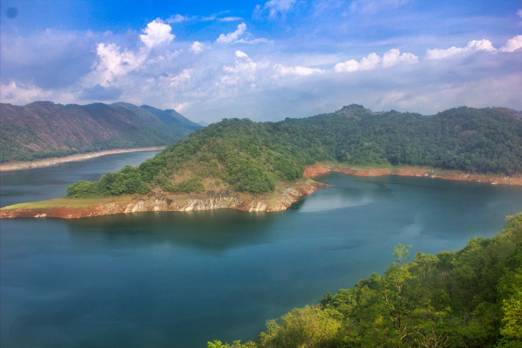 The panoramic view from the top is spectacular. Idukki Dam is opposite the view point while Cheruthoni Dam is to the left. Kulamavu Dam is also in the vicinity but cannot be viewed from the park. Idukki, Cheruthoni and Kulamavu dams have created the huge reservoir. The water is carried by underground pipes to Moolamattam Power Station. It is the biggest underground hydro-electric power station in India.