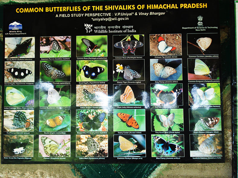 The vegetation consists of large tracts of pine and deodar (cedar) forests. I came across a poster at Kalatop which shows some of the common butterflies of Himachal Pradesh. See the picture above for more details.