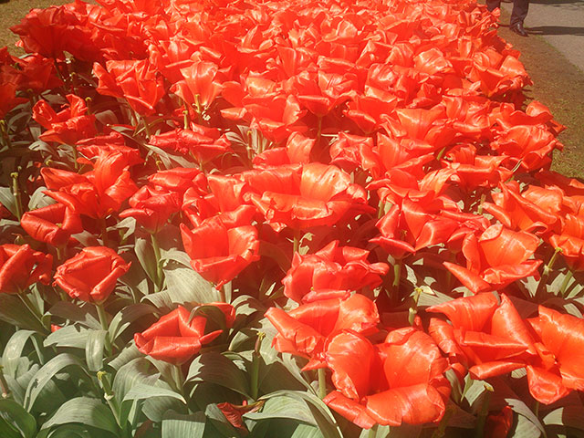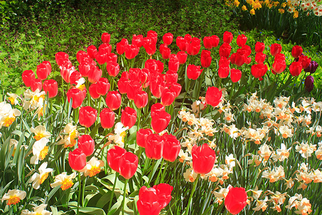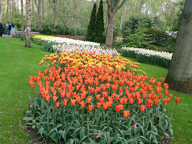 Keukenhof has nearly 100 royal exhibitors who supply their best spring flowers for display. The landscape architect creates a unique design for each of the exhibitors. The exhibitors deliver their bulbs in autumn for planting. Incidentally, Netherlands is a major flower exporter.