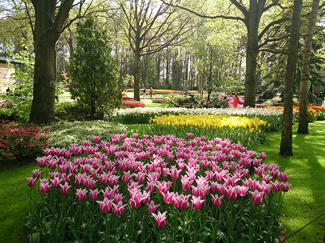 Landscape architects Jan David Zocher and his son Louis Paul Zocher redesigned the castle gardens in English style in 1857. That still makes up the core for Keukenhof Tulip Gardens.