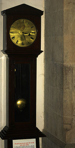 A grandfather clock, made by John Walker & Company of London, is on display. This is a pendulum clock which needs manual rewinding every week. The railways installed precision timekeeping devices in India in 1853.