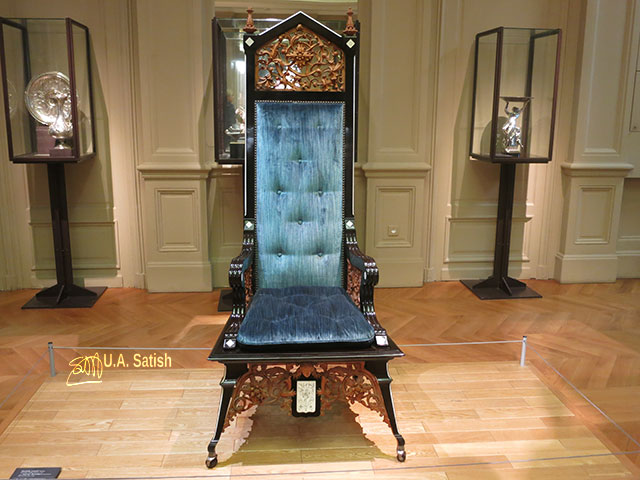 Between 1878 and 1890, Daniele Lovati ran a large workshop specialising in wood and ivory carving, located in Milan. This chair of ivory and ebony on a walnut frame is in Museum d’Orsay. Daniele Lovati made the chair in 1880.