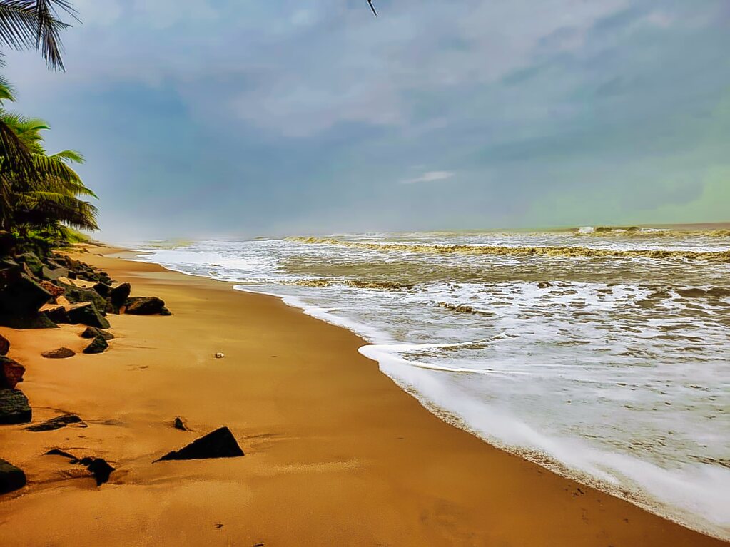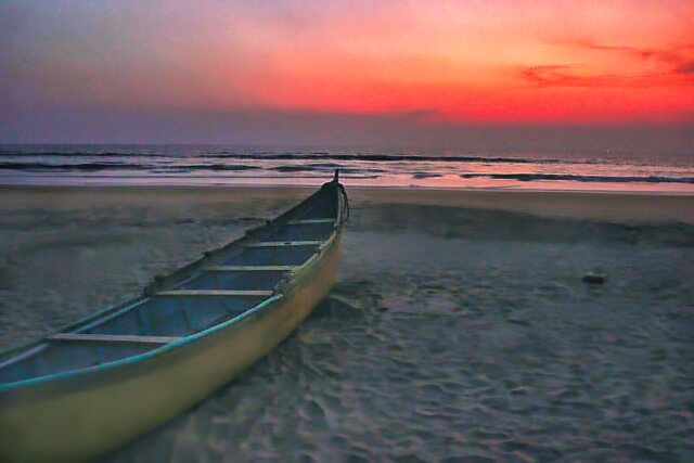 During the rainy season, the sea can become rough. The fishermen then do not go out into the sea. The beach wears a deserted look.