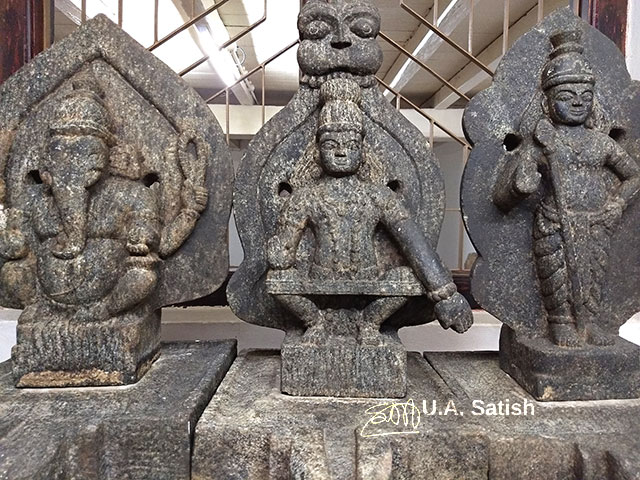 The basement holds many ancient rock sculptures which represent different Hindu Gods. Also in the basement is a gallery of hero stones (veerakkal) which have single panels.