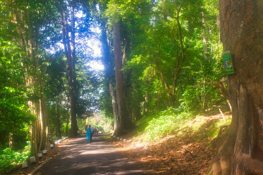 From the entry point, you walk 500 metres to the boating area. Vehicles are not allowed inside. The road has many towering trees on both sides. We could see black monkeys cavorting on the trees.