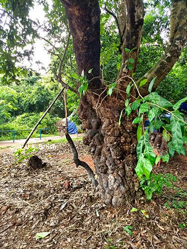 A sacred grove or Kavu surrounds the temple. It is a thickly wooded area. Serpents inhabit the Kavu. Entry to the Kavu is prohibited. Travellers will notice the Kavu along the rail tracks to the north of Nileshwaram station. The famous kavu surrounds an old Kanhiram tree. Seeds of the tree are the most common source of the lethal poison strychnine. The kavu draws many devotees from the neighbouring states too.