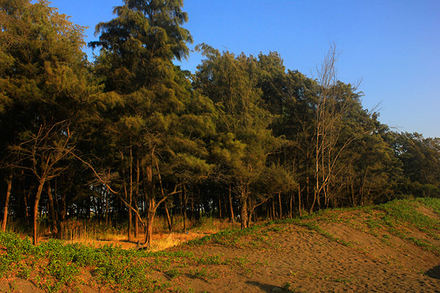 There is a iron gate at the entrance to the beach. I am not sure whether they lock it at any time. After we pass the gate, there is a parking area for visitors. Casuarina trees grow in perfusion along the side of the beach.