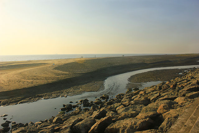 After walking along the beach, I noticed many fishing boats moored near the shore. Perhaps there is a Koli village in the vicinity. On looking out over the sea, we could make out Bhayandar in the distance.