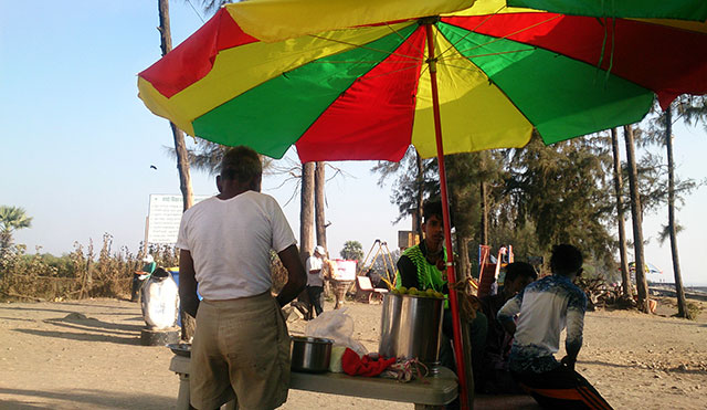 Visitors can see a line of beach shacks on one side of the beach. They had no signs of occupancy.