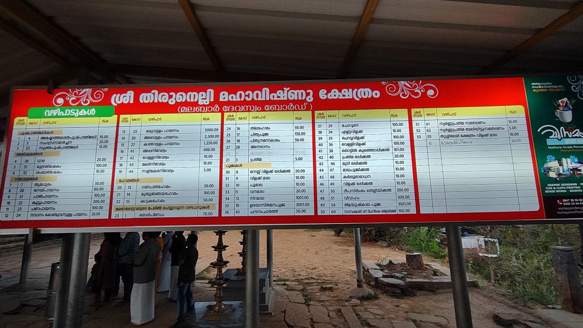 Folklore links Kottiyoor and Trisillery temples to Thirunelli. An old route through Narinirangi mountain links with Trissilery Mahadeva temple. In earlier days, all devotees who visited Trissilery used to undertake the tough crossing of Narinirangi mala to pay respects to Lord Vishnu and Brahma at Thirunelli. The journey was full of danger and might be comparable to the hardships of early Sabarimala pilgrims.