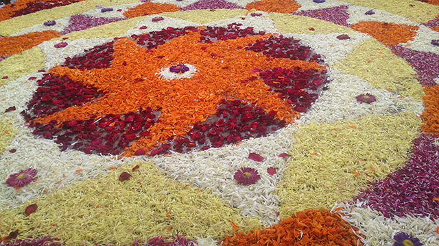 We visited the temple during Onam festival. There was a big pookkalam in the temple premises. You can see it in my photo shown above.