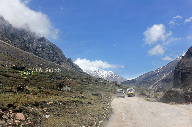 Zero Point is close to the international border with China in North Sikkim. The road from Lachung ends here. Civilians are not permitted to venture beyond. Zero Point is bordered by mountains. On the other side of the mountains lies People’s Republic of China. The mountains are covered with snow during most of the year. The best time to visit the area will be in the months of April and May. The lower stretches of the mountains will be covered with beautiful Rhododendron flowers.